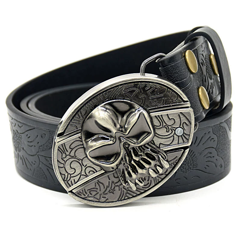 Knife-Skull Belt Buckle, Embossed Black,Belt Knife